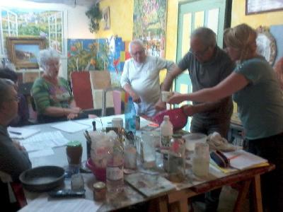 | atelier chimie, fabrication et application d une peinture murale a l argile | initiation et découpe d'une frise a la scie sauteuse, | création palette, notre nordiste prépare ses maquettes, afin d optimiser son voyage, et reproduire les pieces grandeur nature ultèrieurement |
