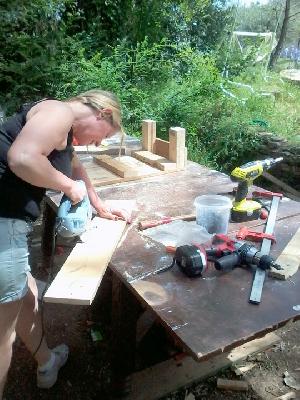 | initation découverte de la meuleuse | fabrication de la porte et mise en application des peinture bois maison | fabrication de notre enduit a l argile |