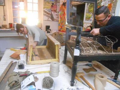 | | apprentissage par la création de mobilier sur bois de recupération | stages tapisserie, guindage d une chaise |