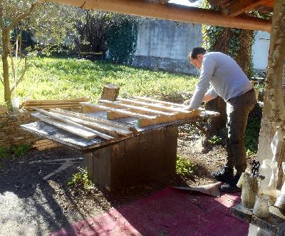 | atelier thérapeuthiques: emmenagementt d'un espace jardin en bois de palettes | un projet solidaire et créatif | fabrication d'une table de jardin en palettes |